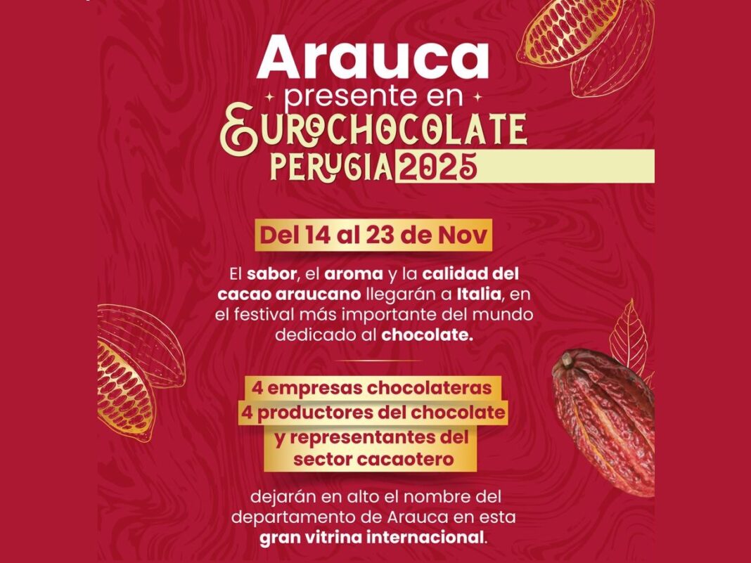 El departamento de Arauca hará parte de la edición número 31 del Eurochocolate International Exhibition, denominado este año “La Fiesta en las Nubes”, considerado el festival más grande y prestigioso dedicado al cacao y al chocolate en Europa. El evento se realizará del 14 al 23 de noviembre de 2025 en Perugia, Italia, y reunirá a maestros chocolateros, productores y expertos de todo el mundo.