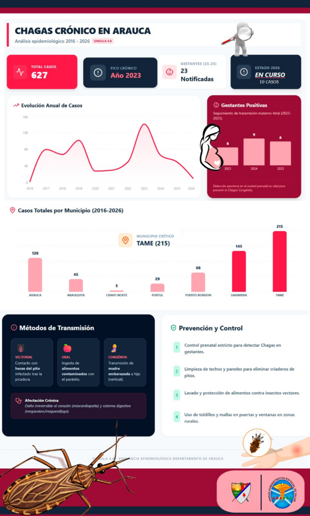 En el marco del Día Mundial de la enfermedad de Chagas, la Unidad Administrativa Especial de Salud de Arauca reiteró el llamado a la comunidad a fortalecer las acciones de prevención, detección temprana y control de esta patología, que continúa presente en el departamento de Arauca.