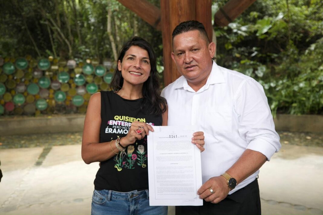 En Cali, el alcalde de Arauquita, Luis Panqueva Torres, junto a la ministra de Ambiente y Desarrollo Sostenible, Irene Vélez Torres, logró la firma de la resolución que asigna cerca de $29.917 millones para la ejecución de un proyecto ambiental de gran impacto en el municipio.