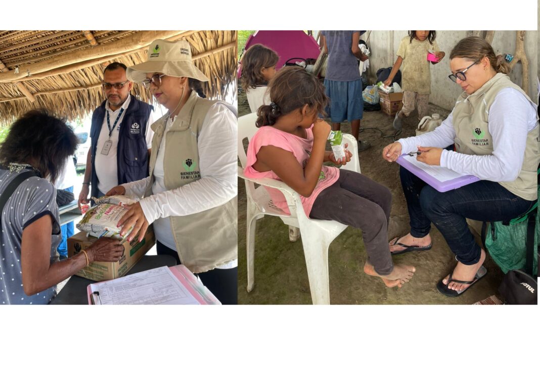 Asimismo, se entregó alimento de alto valor nutricional a 60 familias, consistente en 2.196 raciones de Bienestarina líquida y 248 raciones en polvo, con el propósito de fortalecer las condiciones alimentarias de la población infantil en la zona.