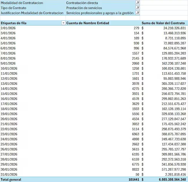 El exconcejal de Bogotá, Daniel Briceño, denunció que el gobierno del presidente Gustavo Petro habría firmado 101.441 contratos de prestación de servicios antes de la entrada en vigencia de la ley de garantías, por un monto aproximado de 6 billones de pesos.