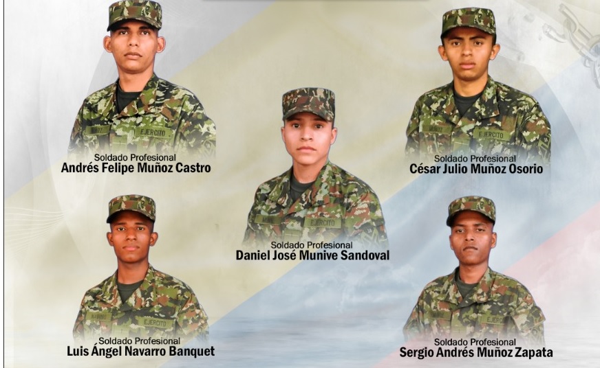Los soldados retenidos fueron identificados como: Andrés Felipe Muñoz Castro, Sergio Muñoz Zapata, César Muñoz Osorio, Luis Ángel Navarro Banquet y Daniel José Munive Sandoval.