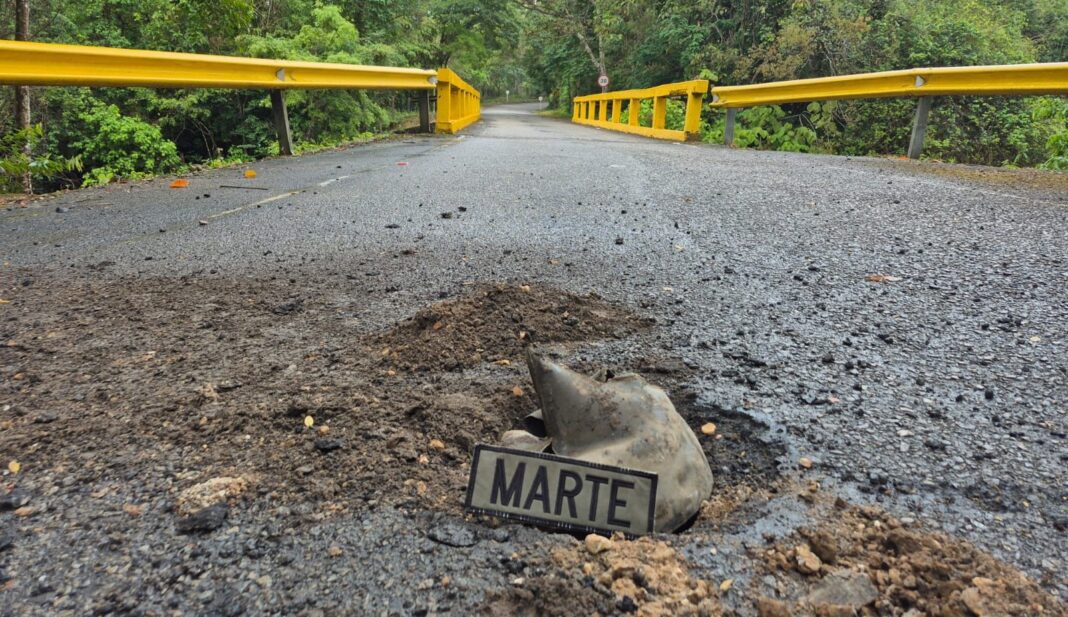 Autoridades señalaron que este hallazgo confirma la reiteración de una práctica criminal consistente en instalar explosivos en vías de alta circulación, afectando la movilidad regional y generando temor entre las comunidades.