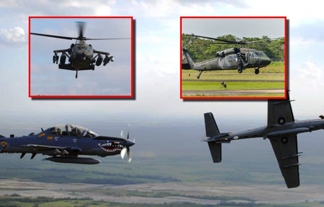 El ministro también indicó que dentro de las aeronaves aseguradas se encuentran equipos utilizados en operaciones, incluidos helicópteros en zonas de alta exposición.