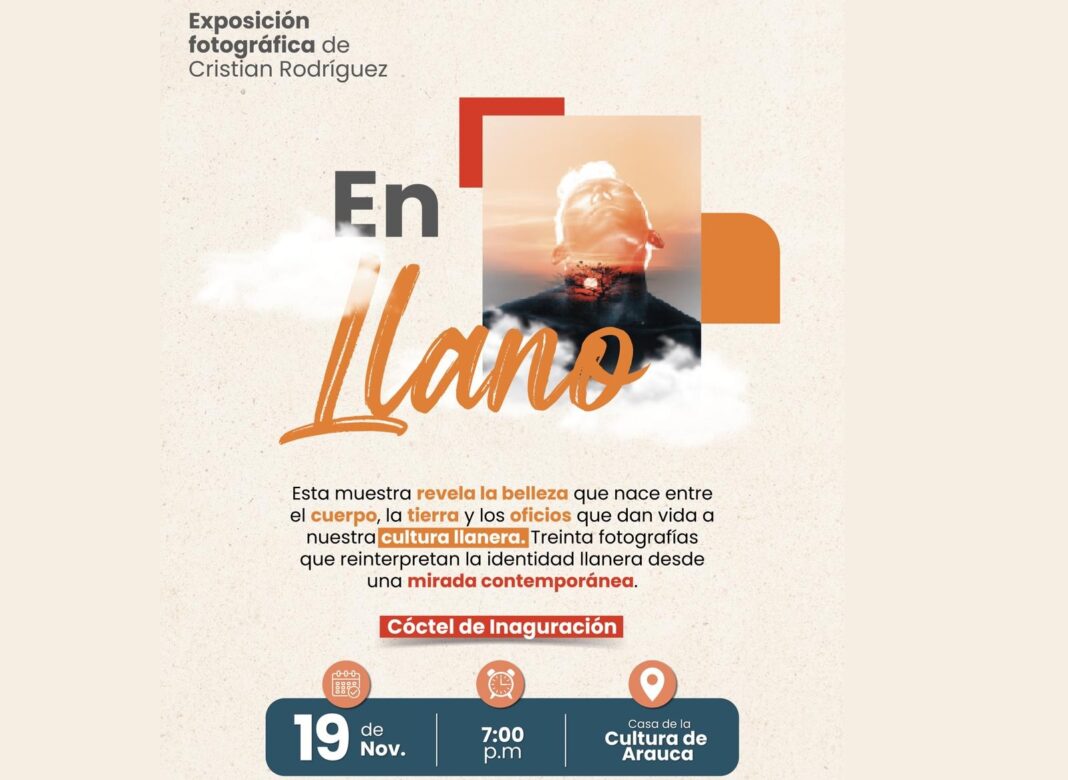 La Casa de la Cultura de Arauca será escenario este 19 de noviembre, a las 7:00 p.m., de la inauguración de “En Llano”, una exposición fotográfica que invita a recorrer la identidad llanera a través de 30 imágenes que exaltan el cuerpo, la tierra y los oficios tradicionales del territorio.