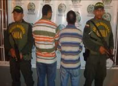 En la acción desarrollado en la Calle 19 del barrio Las Américas, las unidades dela Gaula de la Policía capturaron a Luis Eduardo Barrera Suescún y Eder Manuel Mendoza De león, de 45 y 33 años de edad, sindicados de actuar al parecer como miembros de las AUC, denominadas Águilas Negras.