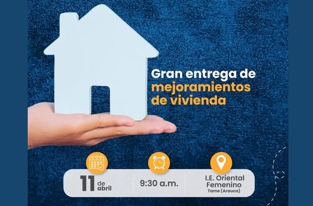 Este sábado 11 de abril de 2026, a partir de las 9:30 de la mañana, el gobierno departamental liderado por el ingeniero Renson Martínez Prada realizará la entrega de mejoramientos de vivienda en el municipio de Tame.