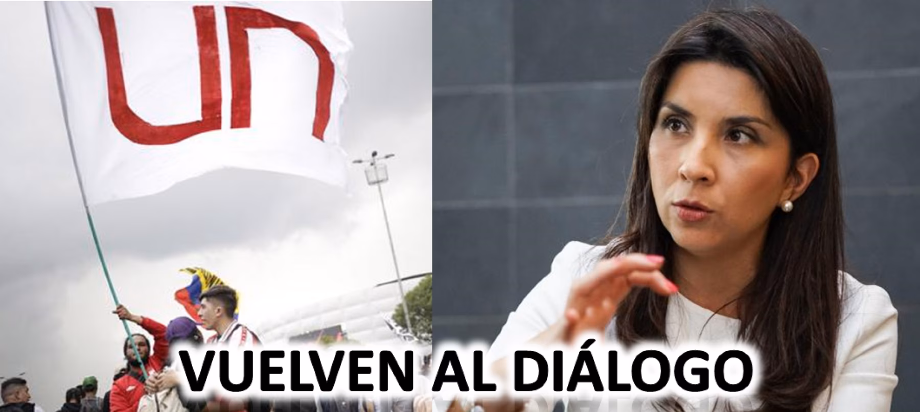 Universidad Nacional no cancelará semestre. «Volvemos a la mesa de diálogo con la intención de sumar«, dijo la Ministra de Educación Nacional María Victoria Angulo. La funcionaria expresó que el encuentro será hoy lunes con los universitarios declarados en paro; el Gobierno Nacional continúa con toda su voluntad de diálogo para buscar una solución a la situación por la que atraviesan las universidades públicas del país.