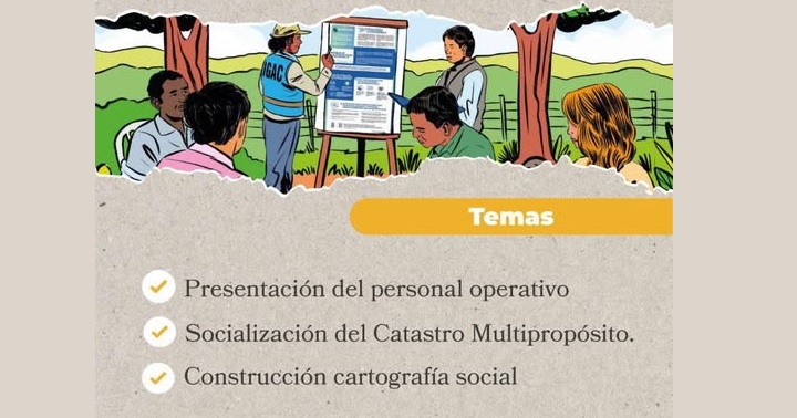 Durante la jornada se abordarán temas como la presentación del personal operativo, la explicación del Catastro Multipropósito y la construcción de cartografía social.