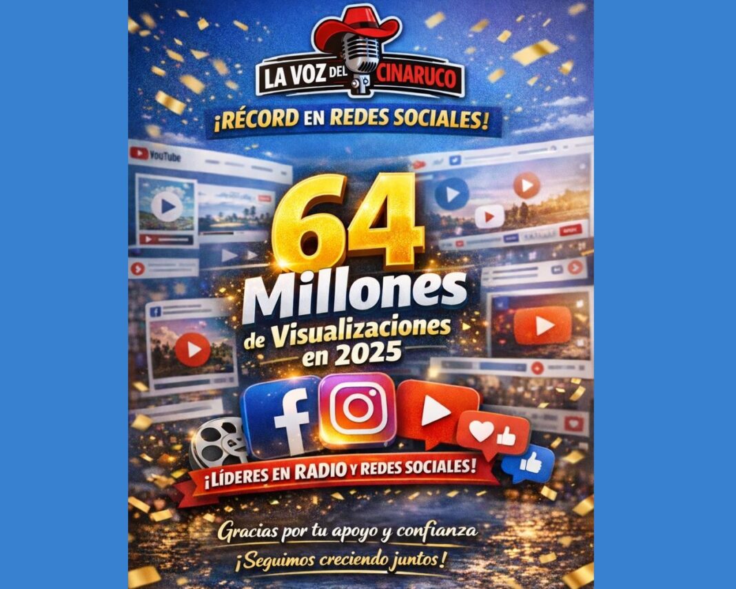 La Voz del Cinaruco cerró el 2025 con un resultado histórico en plataformas digitales, al alcanzar 64 millones de visualizaciones en sus publicaciones, consolidándose como líder indiscutible tanto en radio como en redes sociales en el departamento de Arauca.