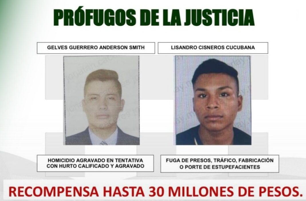 Las autoridades del departamento de Arauca reforzaron la búsqueda de Anderson Smith Gélvez Guerrero y Lisandro Cucubana Cisneros, dos delincuentes que se fugaron del centro de reclusión transitorio de la Estación de Policía de Tame el pasado 18 de octubre.