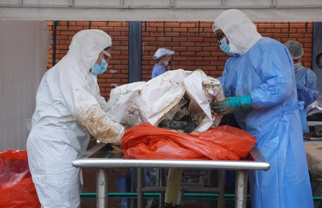 El trabajo estuvo a cargo de un equipo forense multidisciplinario que dividió sus labores entre la exhumación y análisis post mortem para verificar correspondencias de identidad. De ocho cuerpos se extrajeron muestras óseas enviadas al Instituto de Medicina Legal para estudios genéticos.
