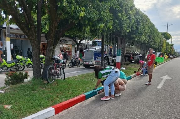 En cumplimiento de la Ley 1801 de 2016 (Código Nacional de Convivencia Ciudadana), un grupo de ciudadanos migrantes venezolanos realizó labores pedagógicas de embellecimiento y recuperación del separador de la calle 14 y otros puntos del Parque Principal de Tame, como medida correctiva tras infringir normas de convivencia.